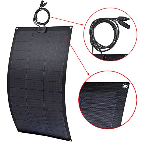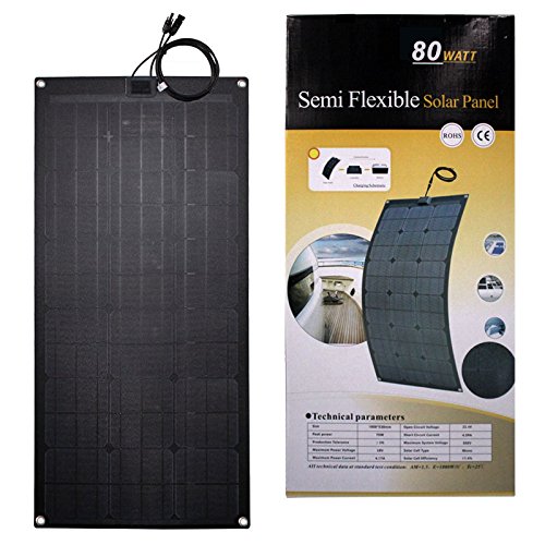 Lensun 80W 12V Black Fiberglass Semi-Flexible Monocrystalline Solar Panel for 12V Charge Battery on Boats, Caravans, Motorhomes, Camping Vans, Yachts, RVs