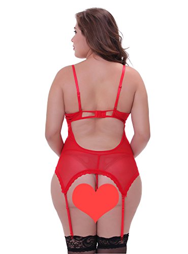 -. Feature : Material: 65% Polyester, 35% Spandex , the sexy lingerie made of fabulous floral lace and high-quality mesh,comfortable lingerie for women to wear. / Super hot sexy bodysuit with sensual sexiness: one piece bodysuit design with cross ribbon in the front , extremely attractive and incredibly enticing, it arousing erotic attraction naturally. / This sexy outfits including Teddy Lingerie, handcuffs, G-string, and matching fishnet stockings,you don't have to pay more attention to looking for stockings again. / Smart design with adjustable shoulder straps and hooks: this sexy corset lingerie is provocative, its adjustable straps fit adapt-ably on the curve, giving a nice visual view, and the handcuffs add just a hint of excitement. / Our Model Information: Height 5'64, Bust 40.2", Waist 30.7", Hip 45.3", she fits 2XL. Please choose you size according to our size chart