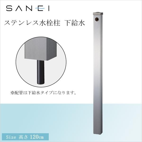 本体にステンレス(SUS304)を使用。表面はツヤを消したヘアライン仕上げです。配管は下給水になります。 製造国:日本 素材・材質:水栓柱:SUS34内部:発泡ウレタン内部給水管:HIVP管 商品サイズ:W6×D6×H120cm ※サプライヤー直送品 ご注文後2~3営業日後の出荷となります【商品名】三栄水栓 SANEI ステンレス水栓柱 下給水 T8000-60X1200