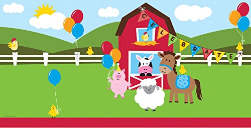 Creative Converting 725506 Border Print Plastic Table Cover, 54 by 108", Farmhouse Fun, Green/Red