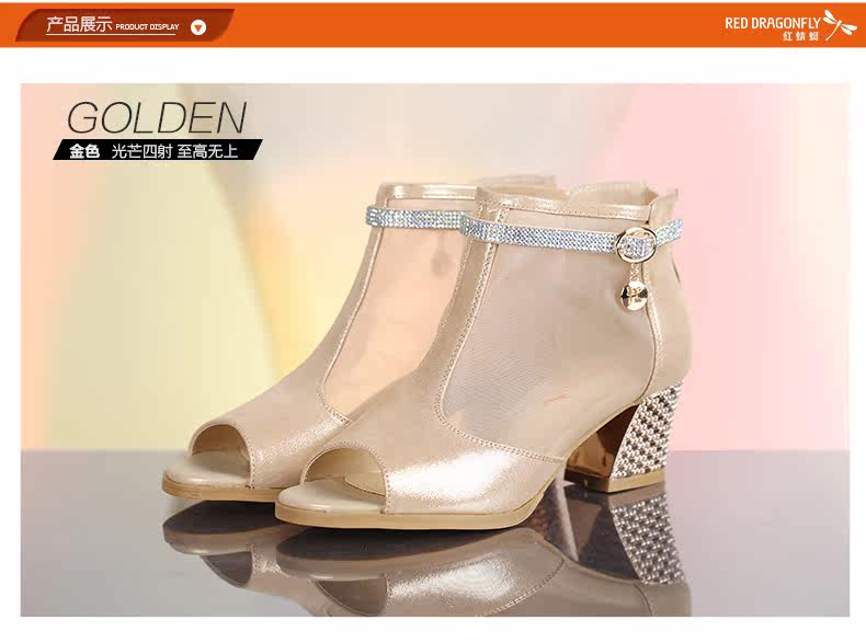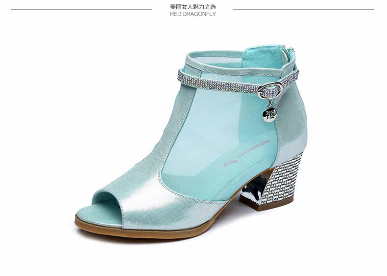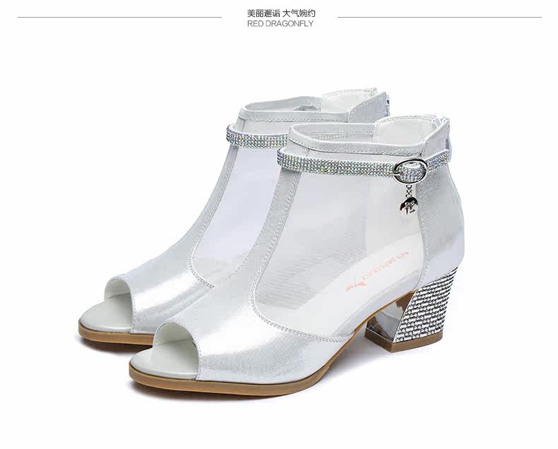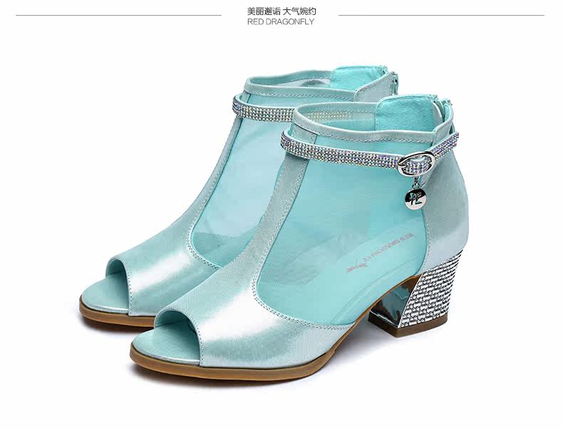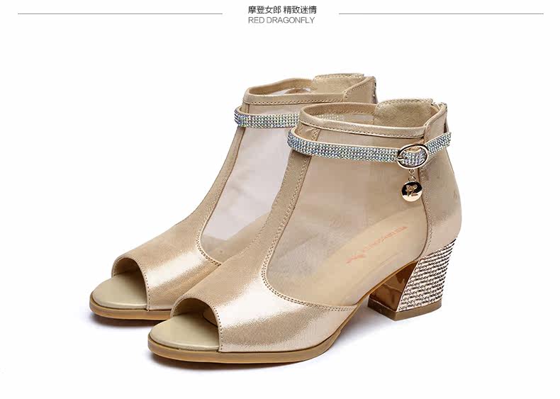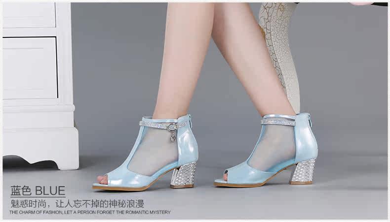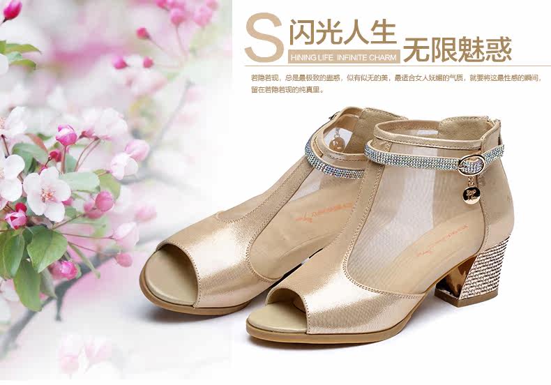 春季新款时尚优雅女单鞋 纱网鱼嘴粗高跟女鞋单鞋