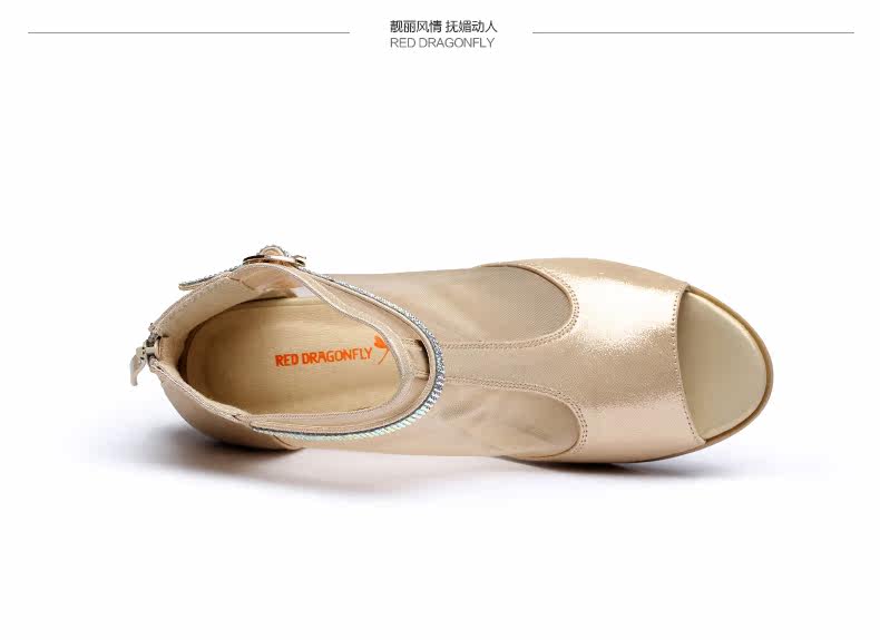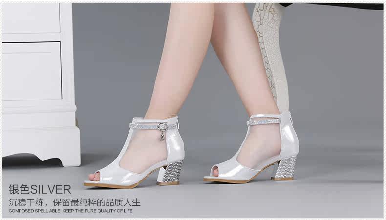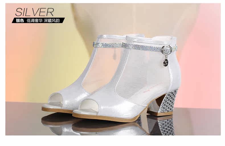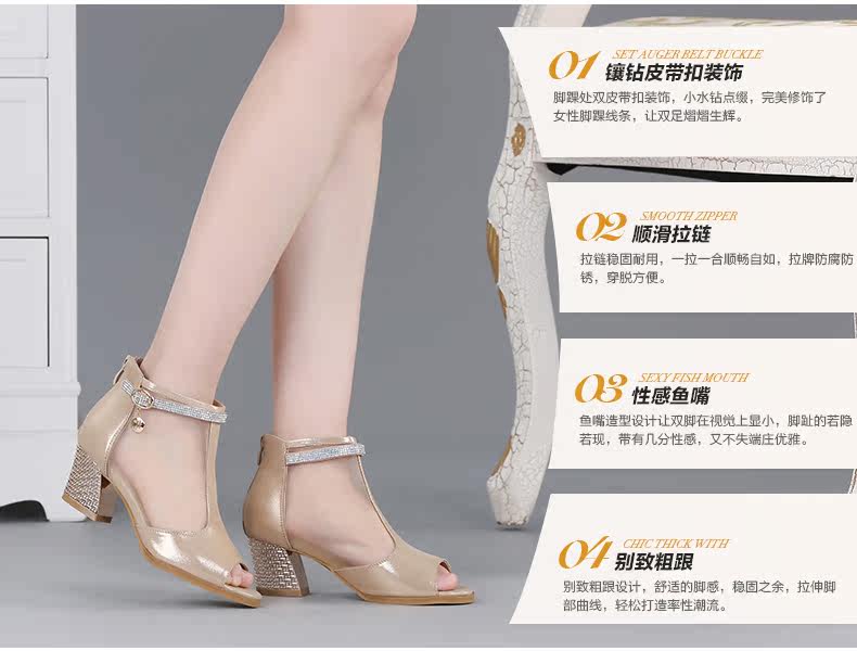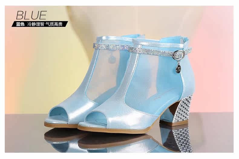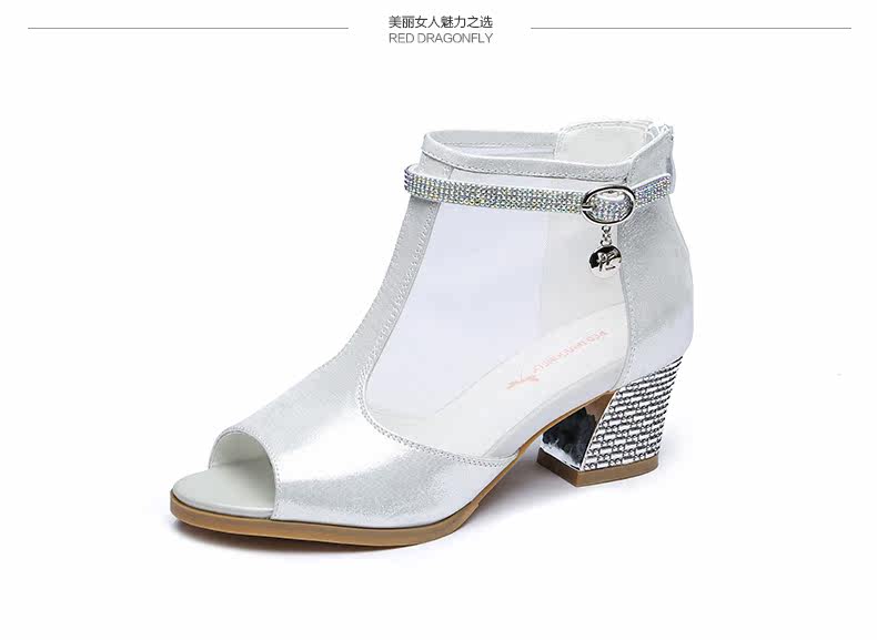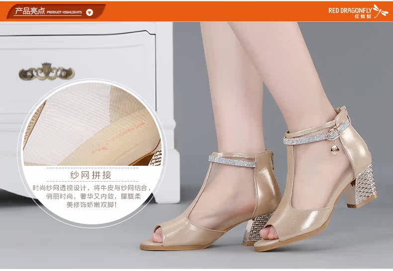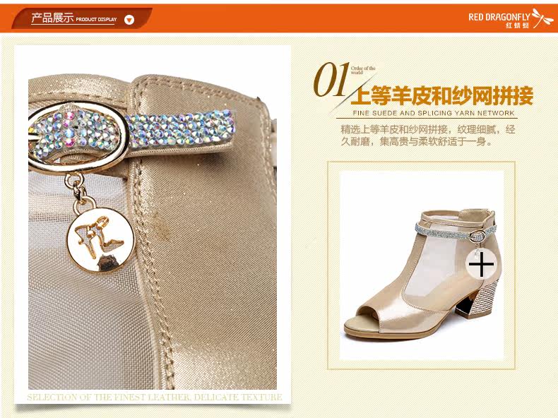 春季新款时尚优雅女单鞋 纱网鱼嘴粗高跟女鞋单鞋