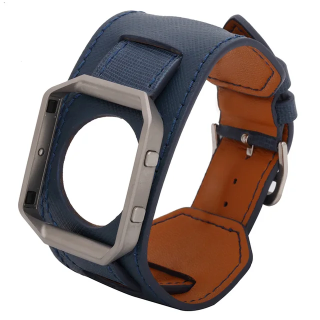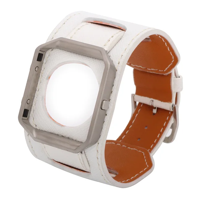 | [해외] FOHUAS 소 가죽 정품 가죽 스트랩 크로스 패턴 Wartch 밴드 핏 비트 블레이즈 팔찌 포함하여 금속 프레임 소매 패키지 |