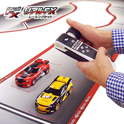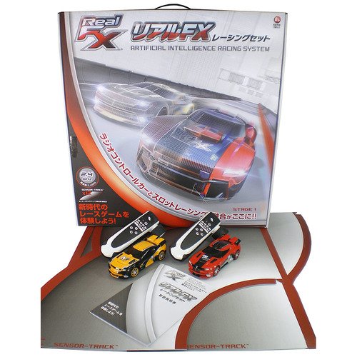 リアルFX レーシングセット【送料無料】 今までにない新体験!ラジオコントロールカーとスロットカーレーシングの融合がここに! 白熱のデッドヒートを体験しよう!人工知能のアシスト搭載できみのドライビングをサポート!更にもう1セット購入して、計4台同時でもレースが楽しめる!(2.4Ghz)先を走るライバルにアクシデントを発生させたり、タイヤ消耗のモードも選択できさらにレースが盛り上がる!コースアウトしたらRCモードに切り替えコースに復帰しよう。 1人で遊ぶときはもう1台がコースを読み取り自動走行することで1人でもレースが楽しめる!16パターン以上のコースレイアウトが可能。 <セット内容> ・人工知能搭載レーシングカーx2台 ・操作進行やレース状況を音声でナビゲートするハンドセットx2個 ・コースレイアウトを変更できるトラックパーツx12シート ※ご使用の際は、市販の乾電池をご使用ください。その際は、充電式電池はご使用にならないでください。また、充電式電池が付属している商品に関しては、付属の充電池・充電器のみをご使用ください。