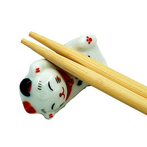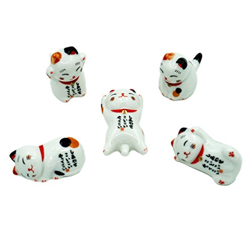 Popculta Cute Lucky Cat Chopsticks Rest Dinner Spoon Stand Knife Fork Holder (Set of 5)
