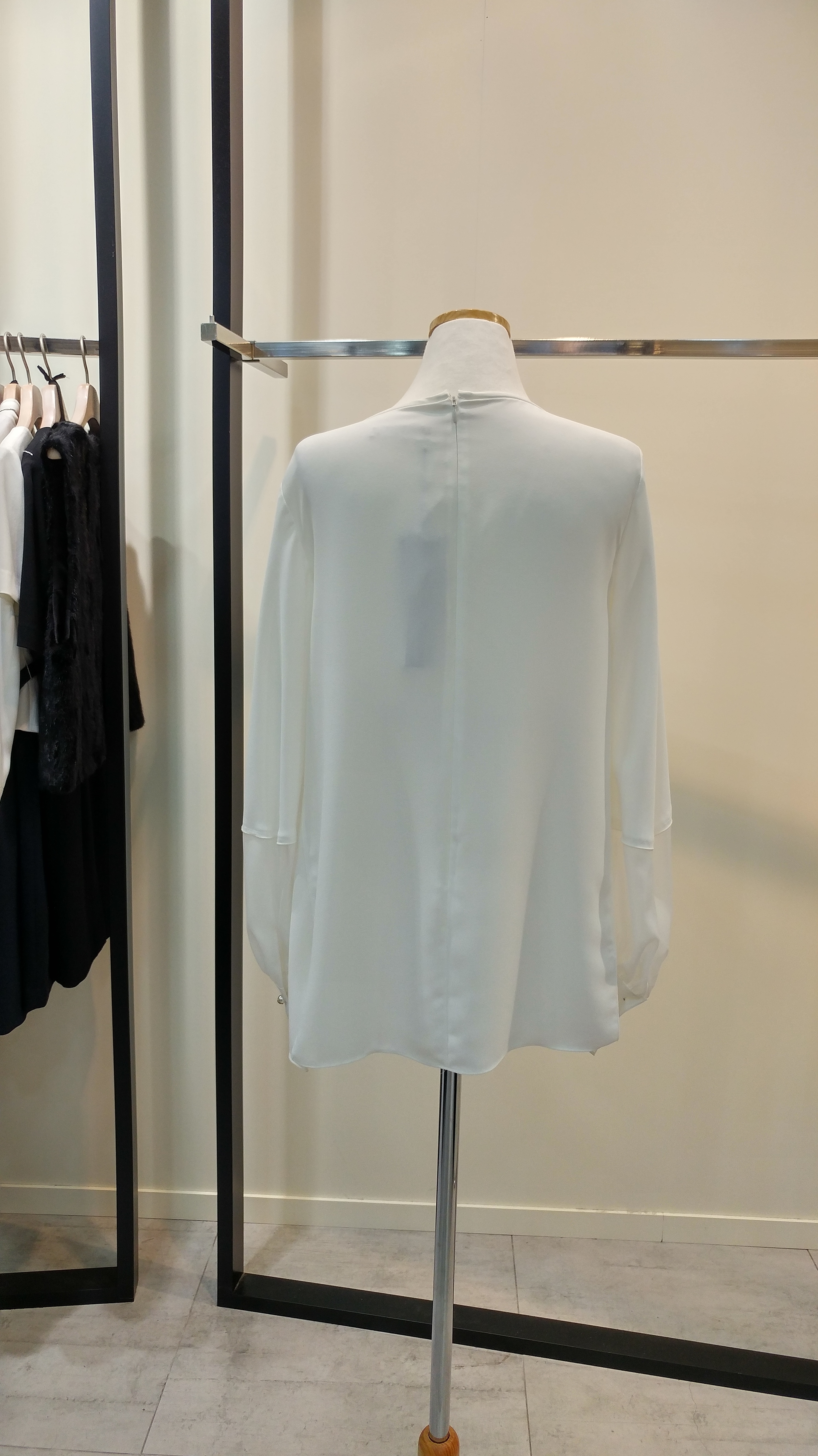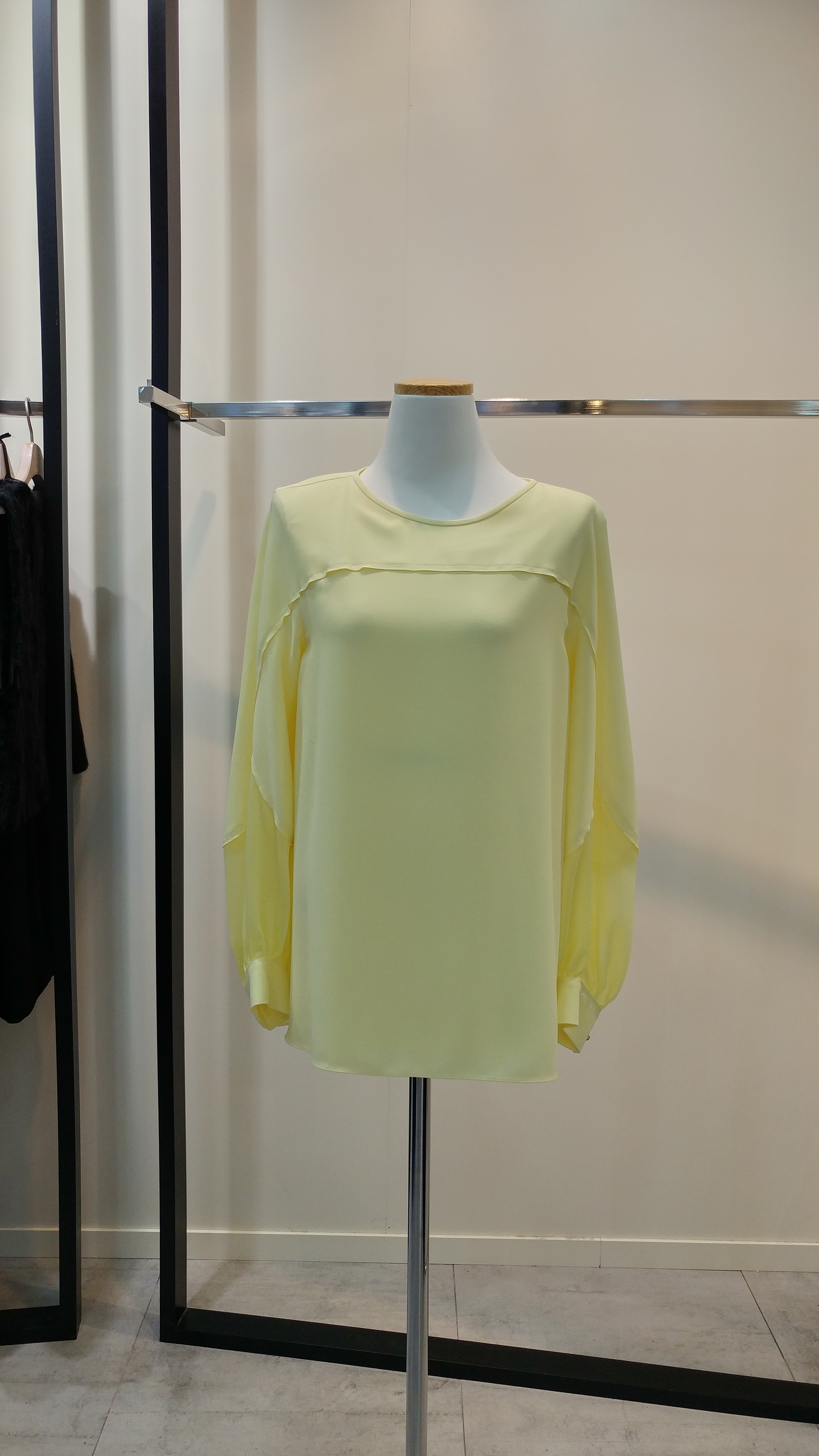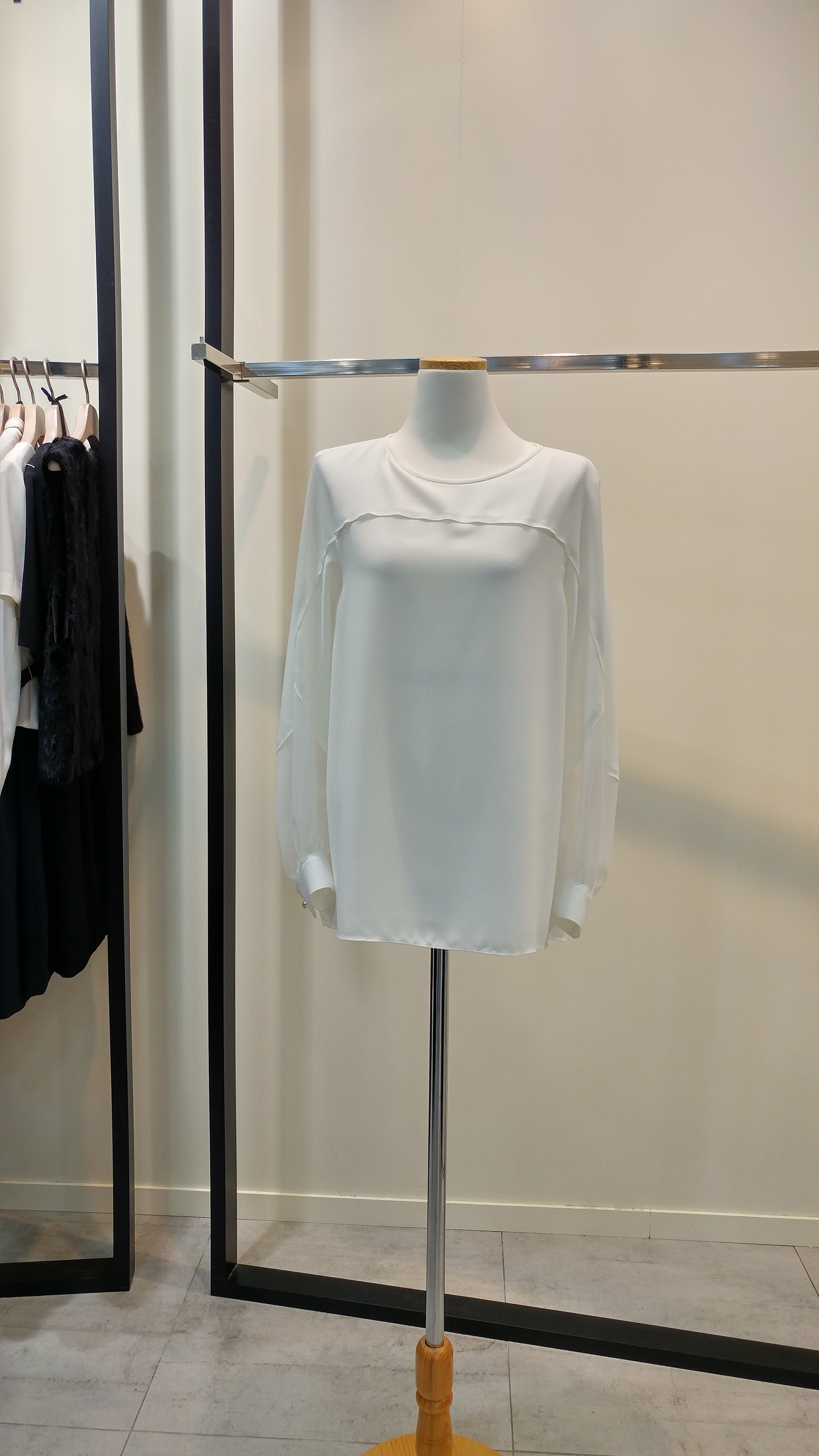 라운드네크루즈핏블라우스입니다^^  팔소매쉬폰배색이 포인트로  깔끔하며 코디하기쉬운  스타일  총장67