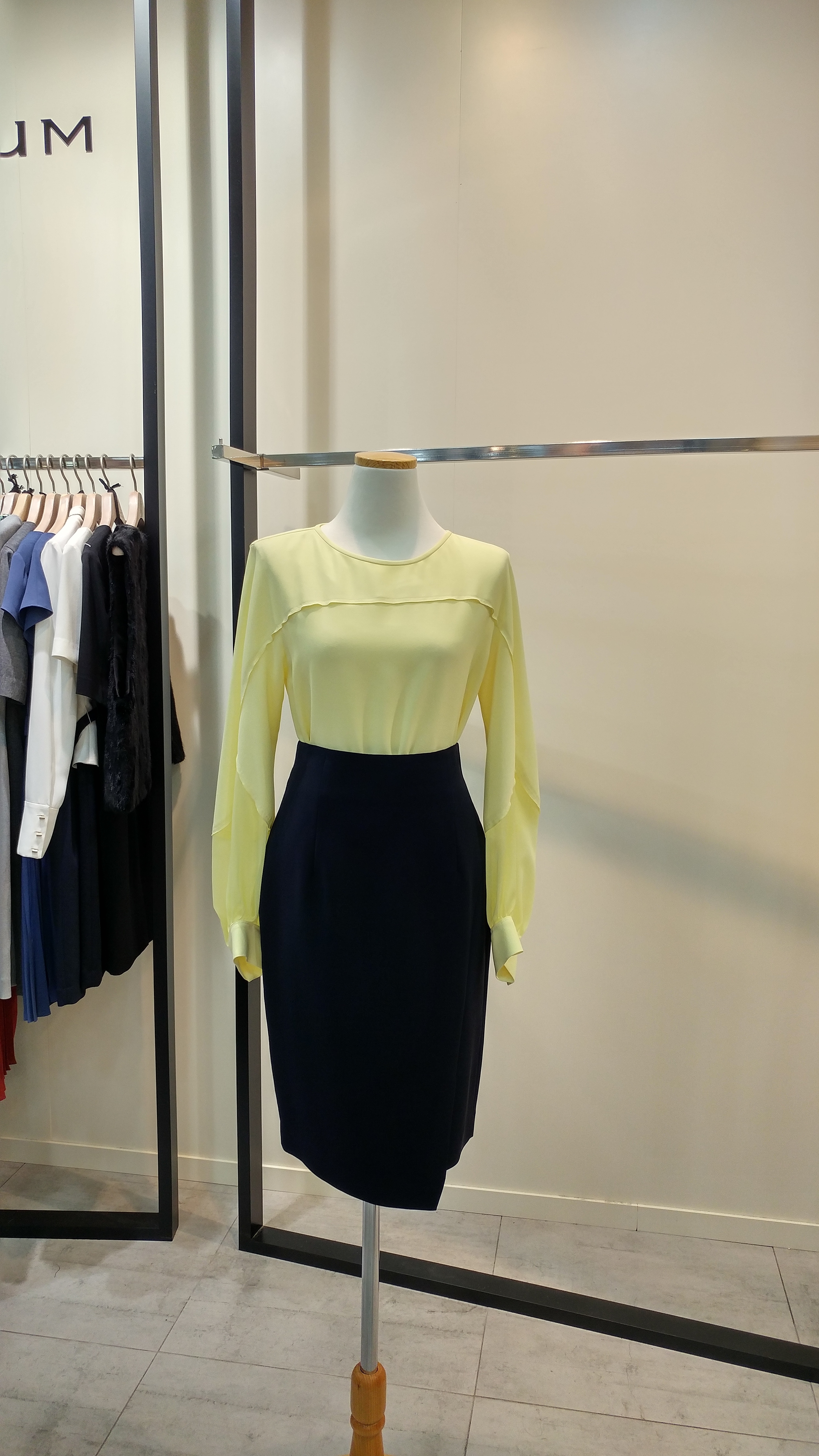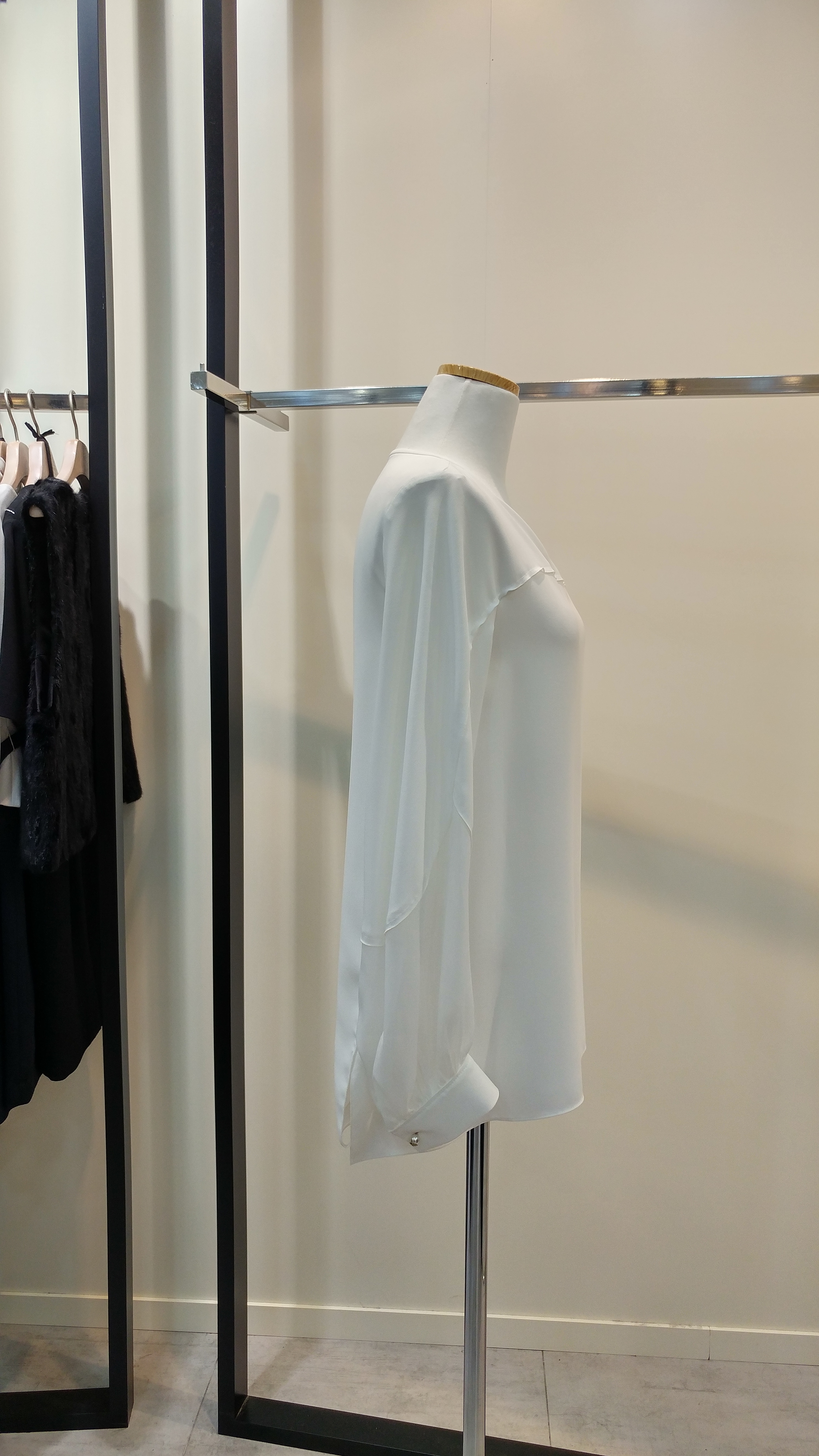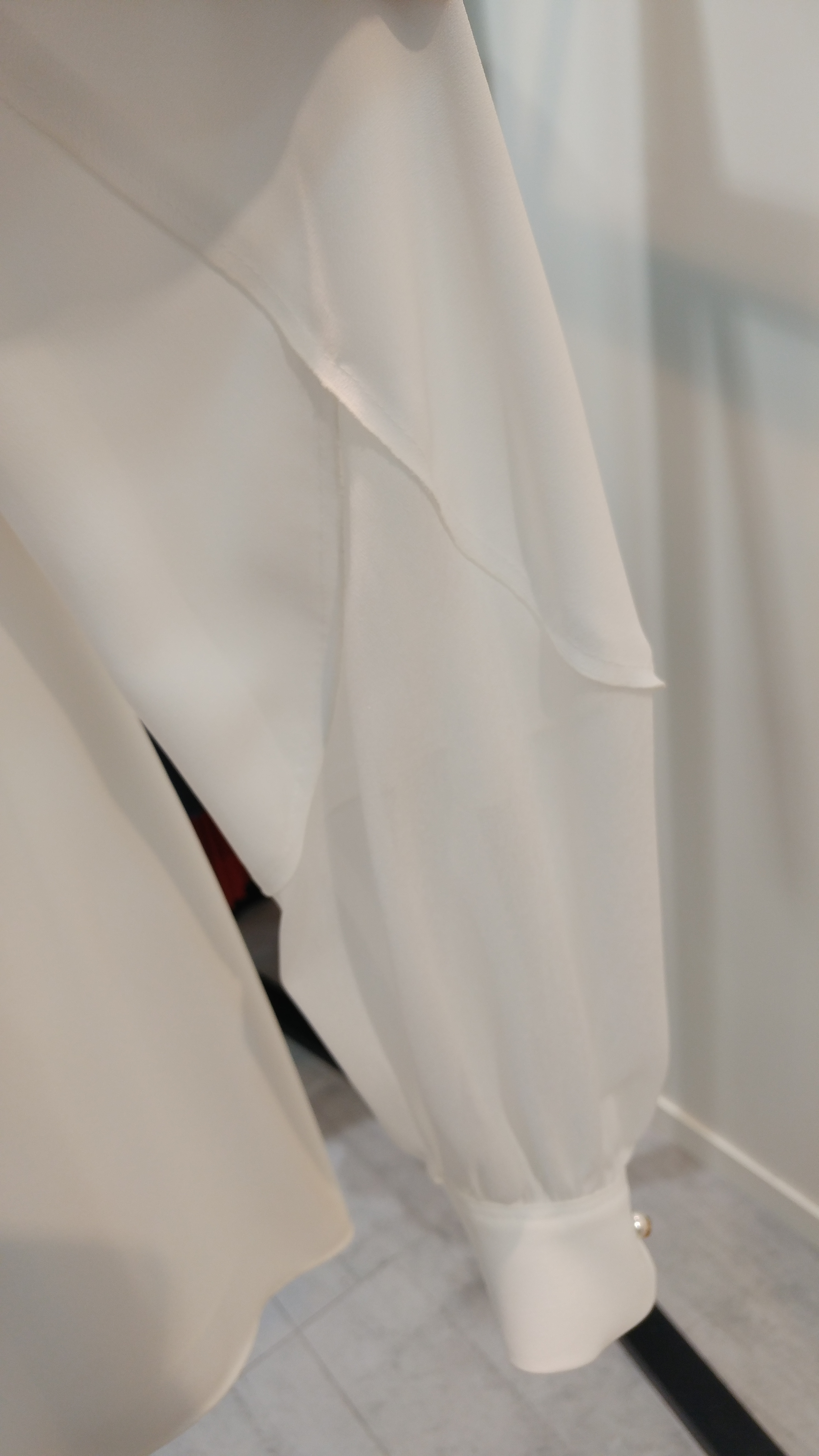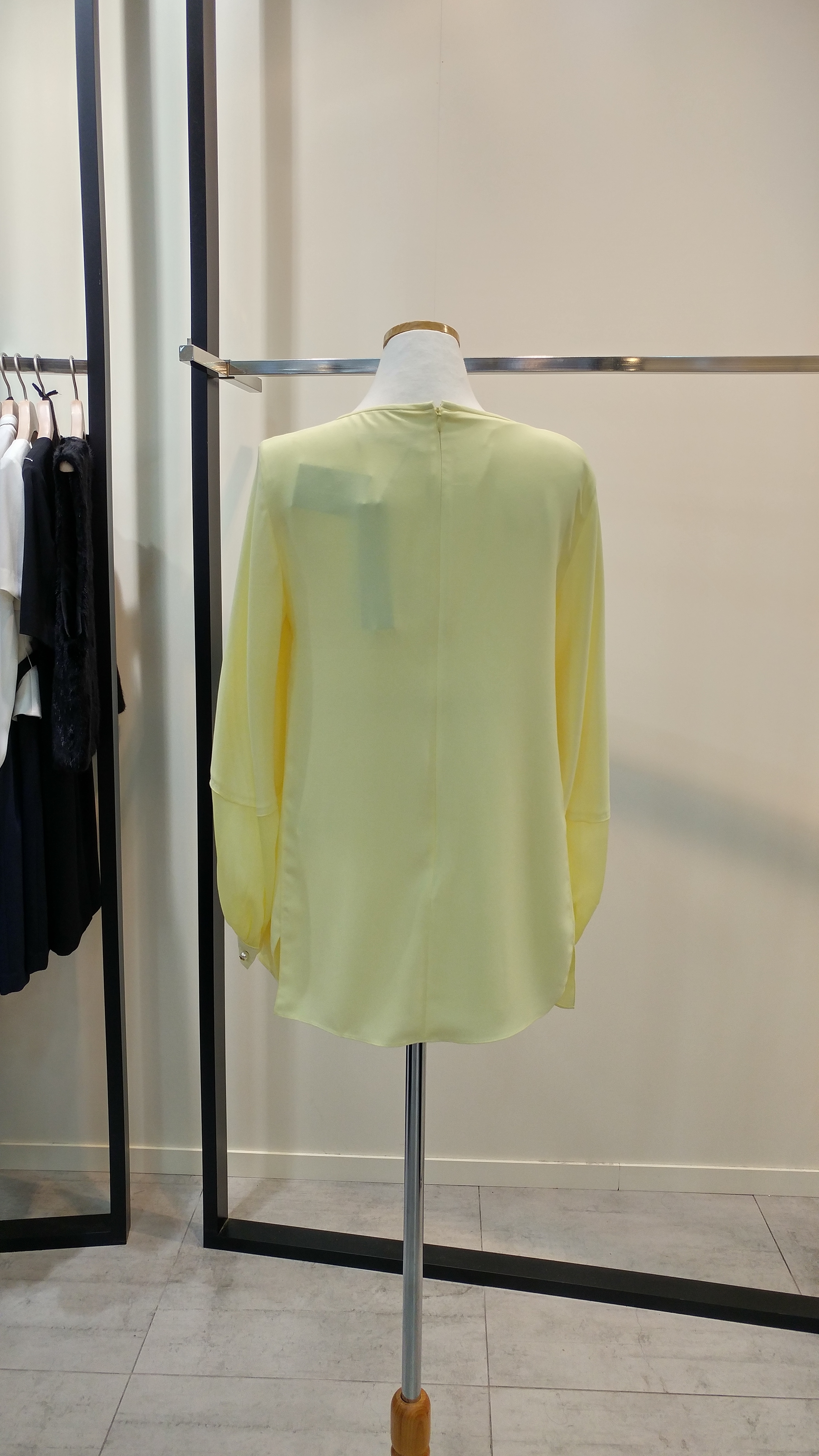라운드네크루즈핏블라우스입니다^^  팔소매쉬폰배색이 포인트로  깔끔하며 코디하기쉬운  스타일  총장67