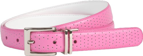 Our nike perforated to smooth reversible features the following benefits. Feather edge strap reverses from perforated pattern to smooth. Soft nappa leather. Polished silver harness buckle with engraved swoosh logo. 25mm width.Feature