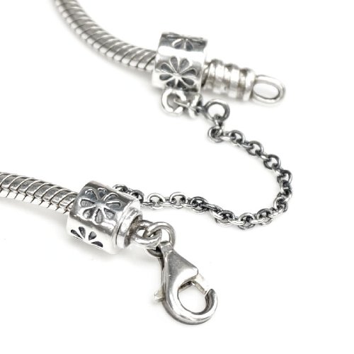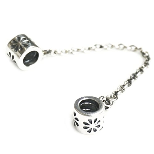 -. Title : Sterling Silver Daisy Flower Safety Chain Screw-on European Bead Charm