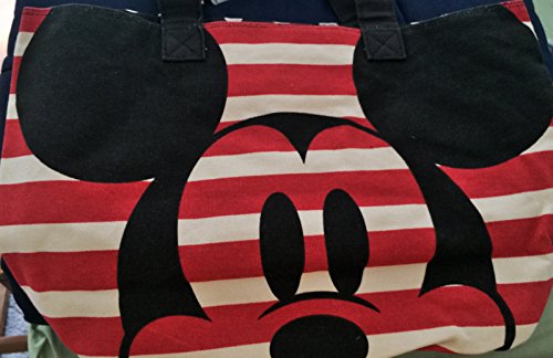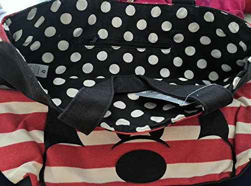 -. Color : red, black, white -. EAN : 0427240418202 -. Feature : Screen art features Mickey on one side and Minnie on the other / 12'' H x 14'' W x 7'' D 100% cotton canvas / Sturdy canvas design and fully lined / Interior zip pocket and Handles drop 8'' L / Imported -. Label : Disney -. Manufacturer : Disney -. PackageQuantity : 1 -. ProductGroup : Single Detail Page Misc -. ProductTypeName : MISC_OTHER -. Publisher : Disney -. Size : 12'' H x 21'' W (at top, 16'' W at bottom) x 6'' D -. Studio : Disney -. Title : Mickey & Minnie Mouse Canvas Tote Bag -. UPC : 427240418202