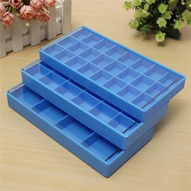 | [해외]뜨거운 판매! 8/18/24 그리드 블루 저장 상자 케이스 컨테이너 후크 작은 보석 시계 피팅 |