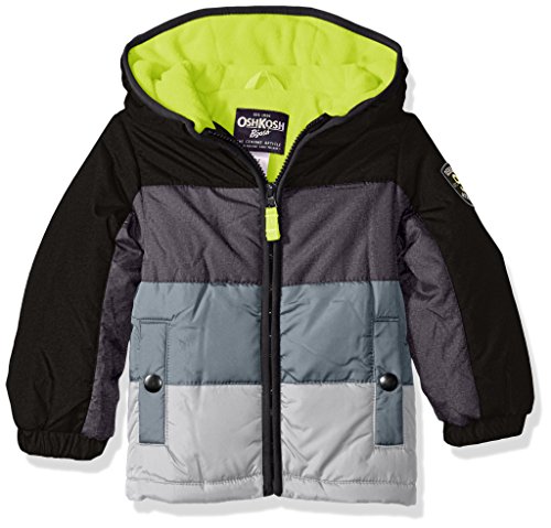 Osh Kosh Little Boys' Classic Heavyweight Colorblock Puffer Coat, Black, 4
