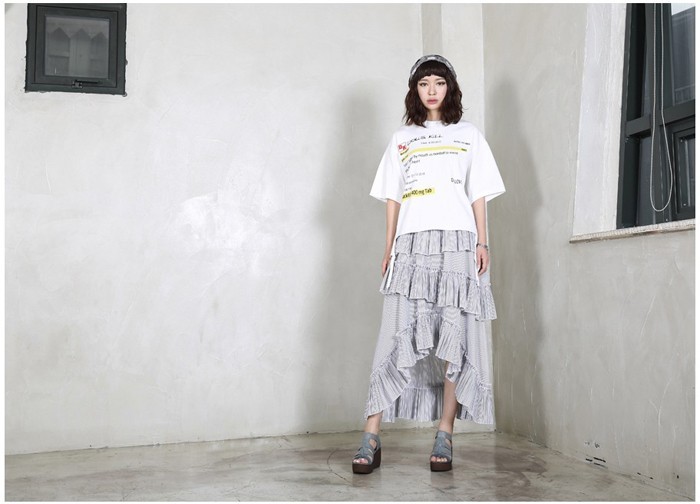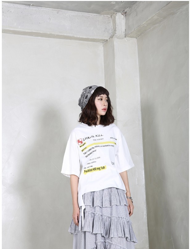 商品名:Tシャツ レディース トップス 半袖 プリント 春 2017 モード系 個性的 40代 ファッション