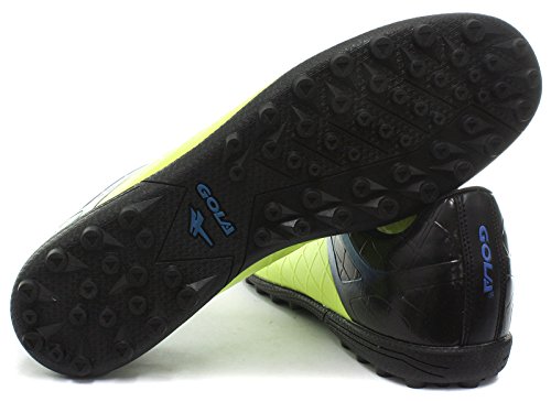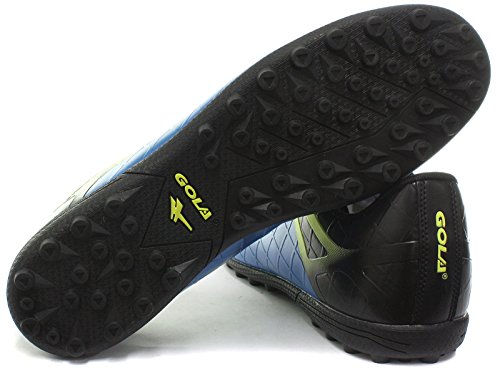 Studio : Gola Publisher : Gola Binding : Apparel Product Description The Gola Ativo 5 Talos VX is a turf trainer designed for use on artificial grass and hard ground surfaces. Features a lightweight, durable, and high quality synthetic upper with an embossed upper design for optimal ball touch and control. The padded collar offers comfort. The moulded rubber outsole delivers reliable grip on artificial surfaces. 0