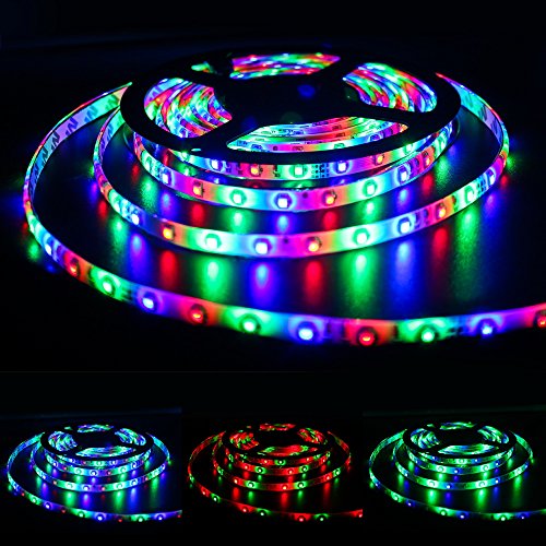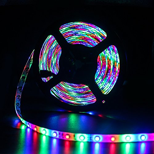 2. Multi-color Strip Lights with 300 waterproof 3528 SMD RGB LEDs in 16.4ft with dimming and brightness controls, suitable for indoor outdoor lighting and décor. Such as kitchen, under cabinet, dining room, bedroom, garden, patio, balcony, party, wedding etc.