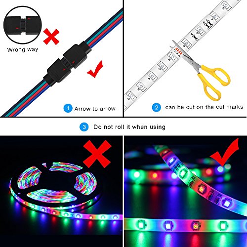4. Easy Installation & Use: Led strip light can be cut with designated cut marks. self-adhesive tape can be fit on any dry and flat surface. Lifespan is over 50000 hrs. Save effort and cost.