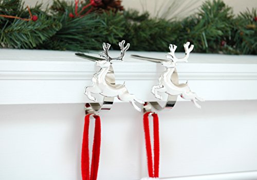 The Original MantleClip Stocking Holder with Removable Holiday Icons, Silver 2-pack (Reindeer Icons)