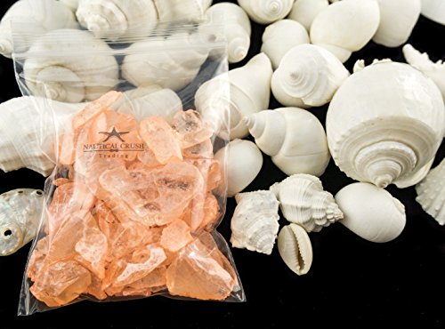White Decorative Sea Shells with Pearlized Peach Sea Glass Chips |1 Pound for Decoration | Shells for Craft | Nautical Crush Trading TM
