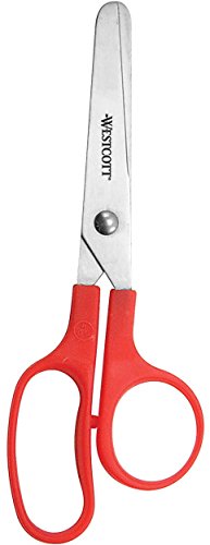 Product Description 5" blunt scissors are designed for right-handed or left-handed students ages 5 and up. Design features straight, plastic handles and stainless steel blades that resist corrosion. 0