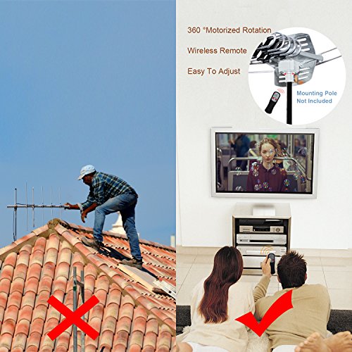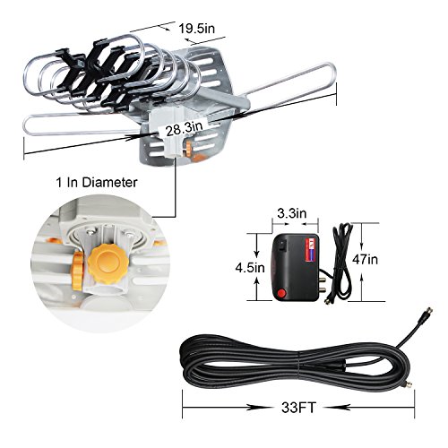 Different from the ordinary outdoor antenna, OHAYO TV Antenna built-in 360° motor rotor which controlled by infrared remote control, and equipped with 33FT long cable which can get the best reception in your house.
