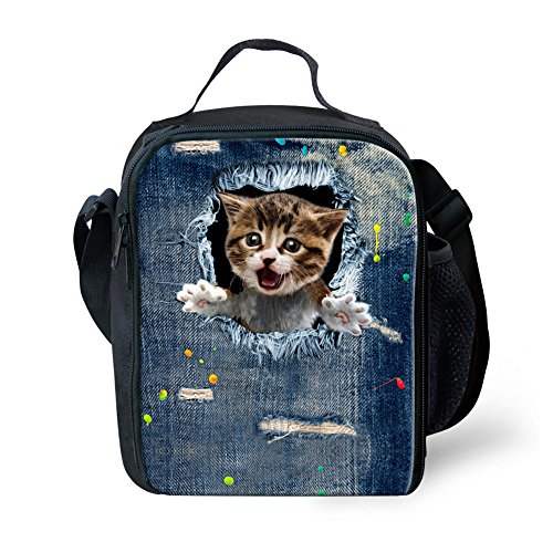 Coloranimal Cute Animal Cat Denim Printed Thermal Insualted Lunch Bags for Kids