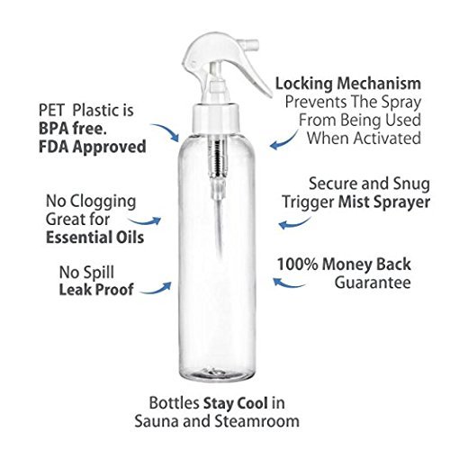 MoYo Natural Labs, PET plastic (also known as PETE and designated by a recyclable) does not contain BPA. This leak proof plastic spray bottle bpa free set is made in the USA MoYo Natural Labs plastic spray bottle 8oz, reusable, refillable, washable plastic spray plastic bottle is a durable spray oil bottle. Industrial strength plastic spray bottle bpa free for liquids can be used for many of your house cleaning, traveling accessories, essential oil, hairspray and skin care needs including perfume and cologne; a safe plastic water bottle. Designed to last, MoYo 8 oz water bottles that spray trigger will save you money and hassle Moyo natural labs spray bottle 8 ounce is ideal as a hair dressing spray bottle and a plastic spray bottle for essential oils, essential skin and body care products. - OUR PROMISE! If these trigger bottles from MoYo Natural Labs become compromised or leak in the first year, we'll replace your hand spray bottle, even if it is your fault. We're that confident that you'll love your new 8 ounce body spray bottle and will continue to use MoYo 8 oz containers in the future. CLICK the "Add to Cart" button to order the MoYo Natural Labs spray bottle 8oz Travel Bottle Set and travel bottle containers. today! 0 |