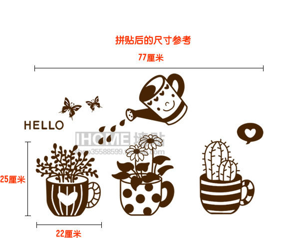 Prices for the two pricesBrand: IHOMEWall Stickers Type: waterproof wall stickersMaterial: PVC,Primer as a removable adhesive, without transfer film, can be pasted directlyStyle: PastoralPattern: Cartoon animationDenominated: tabletsWall Sticker Style: Plane Wall StickersSize: Large (see the figure, unit: cm)