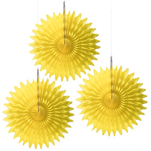 Floral Reef Set of 3 - 8" YELLOW Paper Tissue Rosettes Fan Medallions Hanging Home Decoration Wedding Party (3 Pack)
