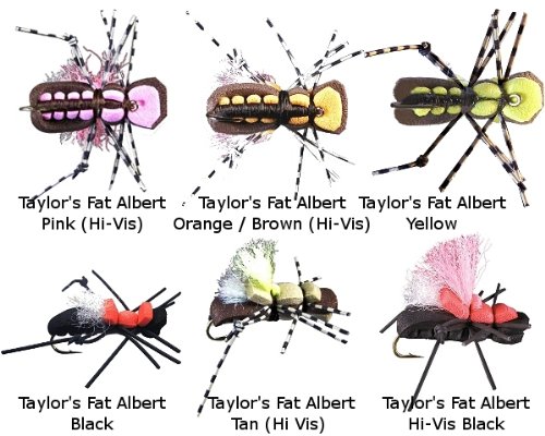 -. Feature : Taylor's Fat Albert Flies by Montana Fly Company / Taylor's Fat Albert-Black, Taylor's Fat Albert - Tan (Hi Vis), Taylor's Fat Albert - Hi-Vis Black / Taylor's Fat Albert - Pink (Hi-Vis), Taylor's Fat Albert - Orange / Brown (Hi-Vis), Taylor's Fat Albert-Yellow / These flies float so well and so high and fish love them and big fishn at that / Sizes available are 08, 10, 12 - Quality, Durable Flies