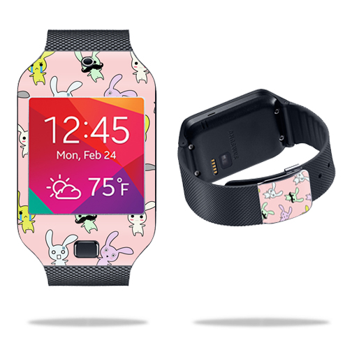 Skin Decal Wrap for Samsung Galaxy Gear 2 Neo Bunny Bunches Mightyskins are removable vinyl skins for protecting and customizing your portable devices. This is a decal skin that applies to your existing Samsung Galaxy Gear 2 Neo Smart Watch. MightySkins feature ultra high resolution designs, the perfect way to add some style and stand out from the crowd. Mightyskins have a durable laminate that protects from scratching, fading and peeling. With our patented adhesive technology, MightySkins remove cleanly when you want to remove them or switch to another design. No sticky mess guaranteed! Samsung Galaxy Gear 2 Neo Smart Watch is not included.