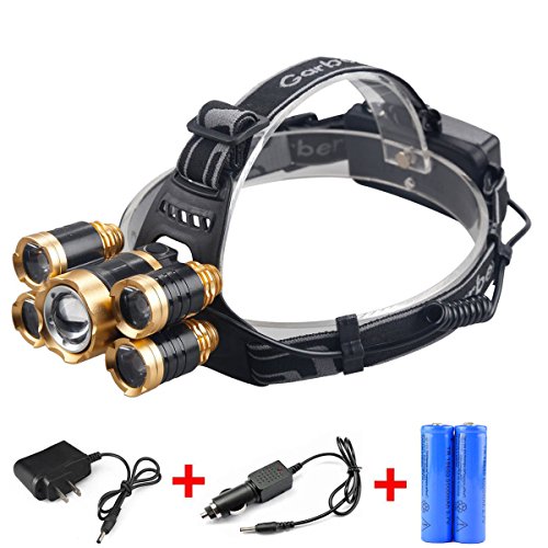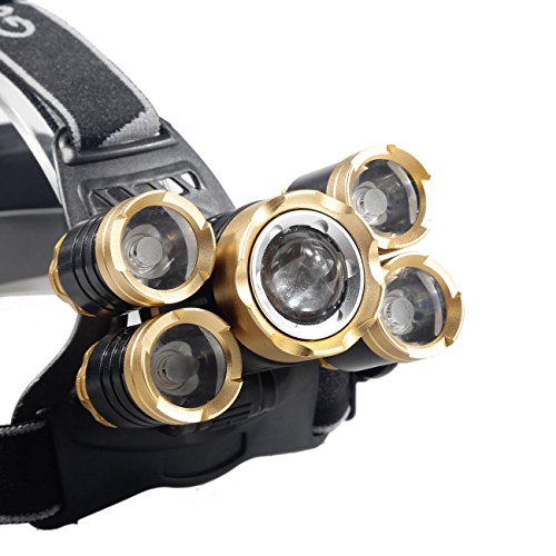Super Bright 5 LED 8000 Lumens Headlamp Rechargeable Zoomable Waterproof Head torch Headlight for Outdoor Hiking Camping Hunting Fishing