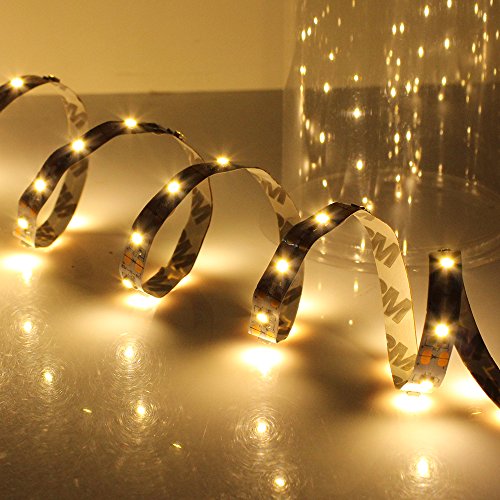 Led Strip Light GOESWELL Flexible Battery Operated Led Strip Warm White Non-waterproof 1m 60leds 3528 SMD Led Strip Lights for Decorate Cabinet Tv Party Mirror