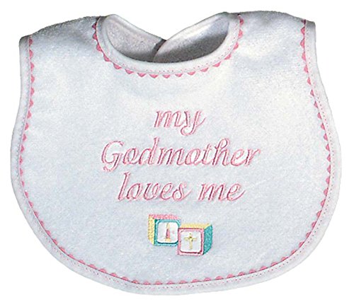 -. Title : Raindrops My Godmother Loves Me Embroidered Bib, Pink