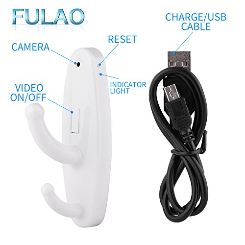 FULAO Hidden Spy Clothes Hook Cam Surveillance Full HD Covert 1280p Wireless Security Home Recorder Camera White