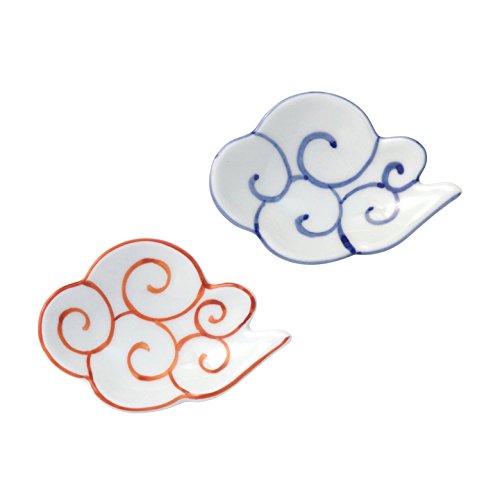 송화당 아리타산 도자기운 형두작은 접시2 개세트(근두구름묘 와:빨강/청) 9.5cm 전평가마 dep1974