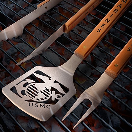 - Premium Grilling Utensils includes Spatula with laser-cut logo, fork and tongs and hard maple handles