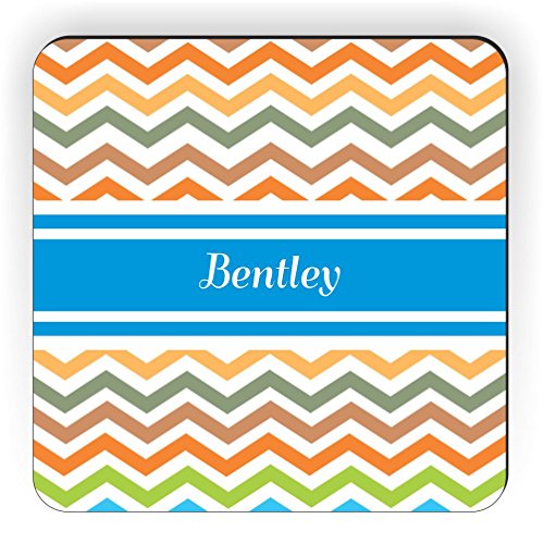 Rikki Knight "Bentley" Blue Chevron Name Design Square Fridge Magnet