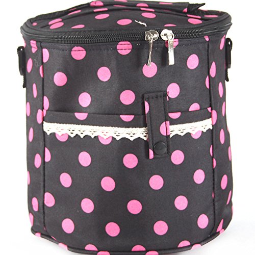 Cylinder Insulation Bag Lunch Bag for Lunch-box Reusable Picnic Bag Tote Bag Cooler Bag Storage Bag (black with pink polka dots)