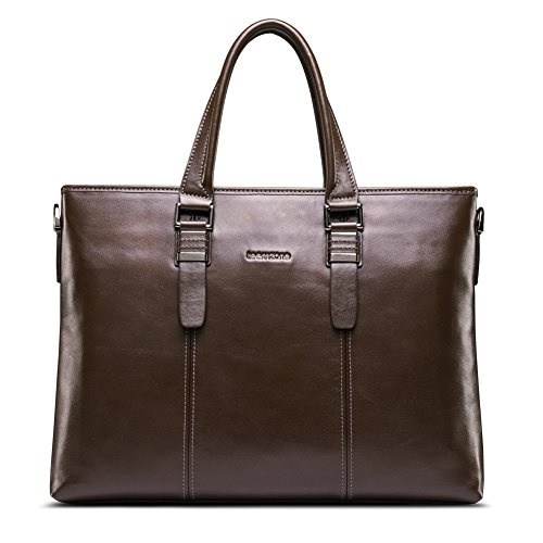 -. Feature : Material: Genuine leather (Cowhide) / Outside size: 39cm*28.5cm*6cm Tote tall 15cm / Structure:Be made of top genuine leather.Back side zipper pocket. The main section has a top zipper closure, interior one side with backwall zipper pocket, one cellphone holder, one cigarette holder, the other side with one open pocket can be fit for iPad. Adjustable and detachable shoulder strap. It can fit 14" laptops or less. / Shoulder strap available, can be used as handbag tote and cross-body bag / Perfect size to hold mini ipad