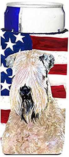 USA American Flag with Wheaten Terrier Soft Coated Ultra Beverage Insulators for slim cans SS4019MUK