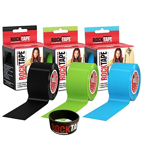 RockTape Kinesiology Tape, 3-Rolls Combo Pack (H2O Blue/H2O Black/H2O Lime)