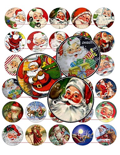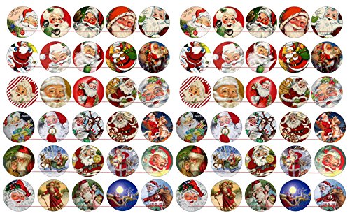 60 Precut 1" CHRISTMAS VINTAGE SANTA CLAUS Bottle Cap Images A