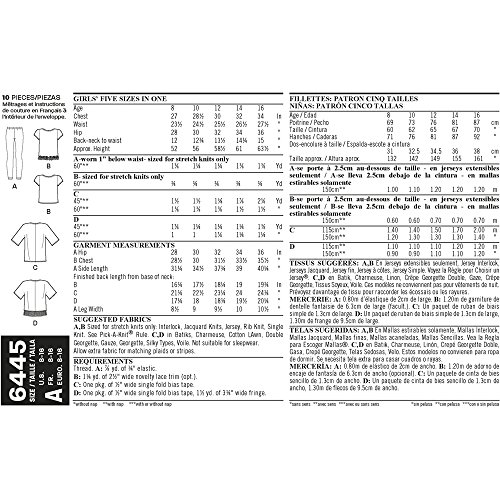NEW LOOK Patterns Easy Girl's Kimono, Knit Top and Leggings Size A (8-10-12-14-16) 6445