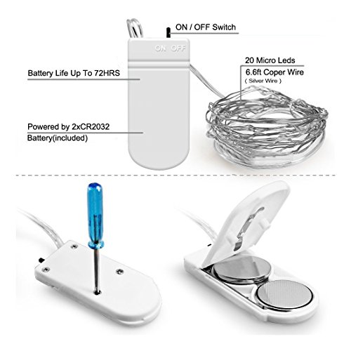 - OPERATE EASILY: CR2032 x2 Batteries Required and Included, the lights are easy to operate and use. They can keep lighting for 42 hours continuous, then the batteries could be easily changed with the screwdriver (included)