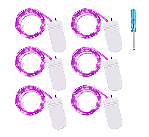 VICBAY 6 pcs Fairy Lights Battery Operated, 6.6ft 20 LEDFairy String Lights, Copper Wire Firefly Lights Starry String Lights For Party Decoration Patio Bedroom Bottle Mason Jar, Pink