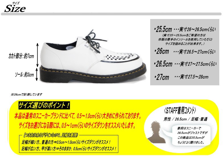 | サイズ | 作り⇒大きめ 【サイズ選びのポイント!】 足幅が細い方、普通の方⇒0.5cm~1.0cmくらいサイズダウンがオススメ! 足幅が広い方、甲が高い方⇒そのままか,0.5cmくらいサイズダウンがススメ! ▼ご確認下さい!▼ 本品は通常のスニーカーブランドに比べて,0.5cm~1.0cmくらい大きめに作られております。サイズをお選びになる際には,0.5~1.0cmくらいのサイズダウンをオススメいたします。 |