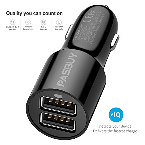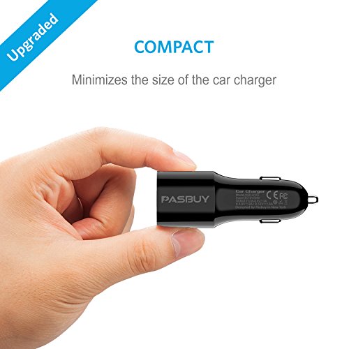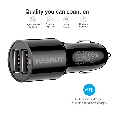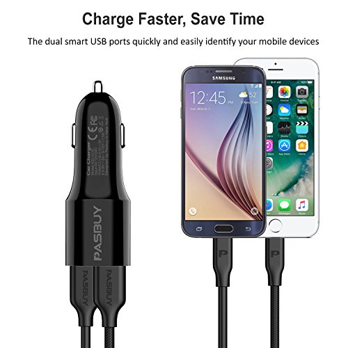 PASBUY 97CC-T 24W Dual USB Car Charger PowerDrive + Soft TPU Micro USB to USB Cable Combo for Samsung Galaxy S6 S7, HTC, Motorola, Nokia, and More (Black-6.6Ft)
