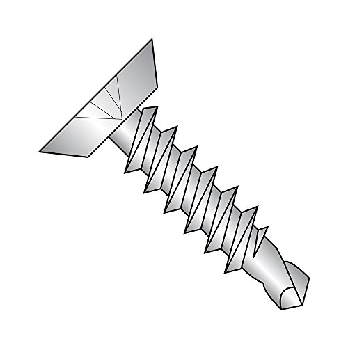 410 Stainless Steel Self-Drilling Screw, Plain Finish, Undercut 82 Degree Flat Head, Phillips Drive, #2 Drill Point, #6-20 Thread Size, 3/8" Length (Pack of 100)