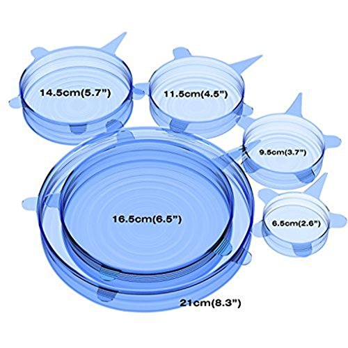 1. These handy covers are made from super-stretchy silicone. 2. They are circular in shape but pliable enough to seal even odd-shaped containers. 3. The tops are made from BPA-free, food-grade plastic. 4. They are microwave and dishwasher-safe. 5. They are also heat-resistant to 450 F, so reheating foods is never a problem. 6. Save on expensive, disposable plastic wrap, and save money on food bills by storing scrumptious leftovers for another meal! 7. You will find a size that fits all your mugs, pots, cups and bowls.