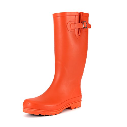 -. Binding : Apparel -. Brand : Outee -. Color : Red -. Department : womens -. Feature : ☆ 100%Waterproof - The waterproof mid-calf rain boot has a natural rubber construction and quick-dry textile lining. / ☆ Comfortable and Durable - The calendered slip resistant durable rubber sole unit gives extra protection against the winter elements. This boot will provide ultimate comfort and warmth throughout the autumn and winter seasons. / ☆ Leg fitting - This boot has adjustable buckle at shaft for better looking and fashion design. / ☆ Beauty with Safety - With Classic Fashion Design, EVA removable soft insoles support comfortable and high-density rubber sole for traction and durability provide enough safety and OUTEE provides 90 DAY WARRANTY. / ☆ Sturdy Rubber Ribbed Soles With 0.98" heel sole; Shaft measures approximately 12.99" from arch -. Label : Outee -. Manufacturer : Outee -. PackageQuantity : 1 -. ProductGroup : Shoes -. ProductTypeName : SHOES -. Publisher : Outee -. Studio : Outee -. Title : Outee Women Rain Boots Red Rubber Waterproof Garden Boots Mid-Calf Matte Solid with Adjustable Buckle